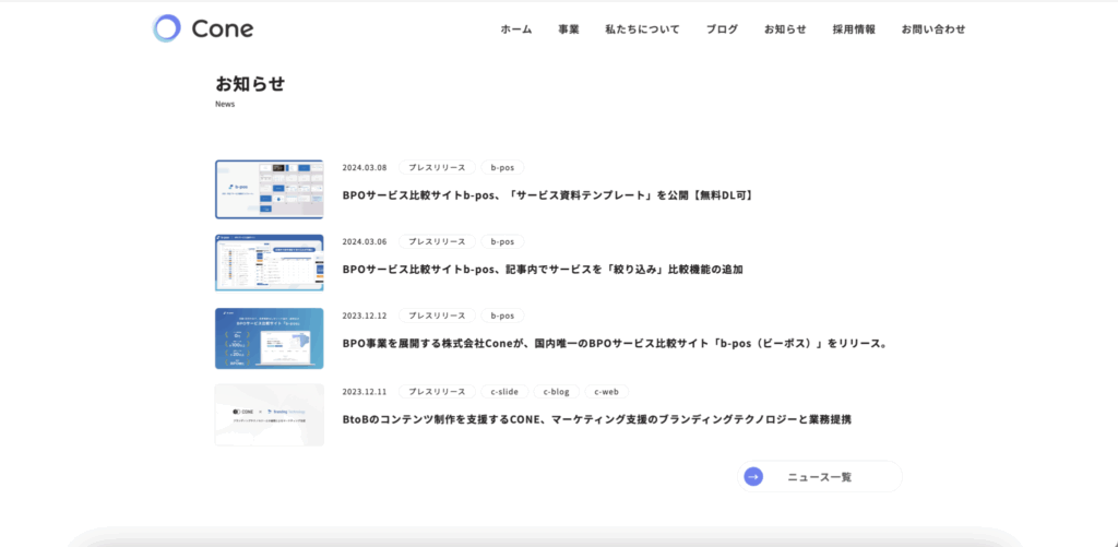 上記のように「b-pos」というサービスに関するプレスリリースを、直近で数回打っていることから、このサービスに力を入れているのではないかなど、予想することができます。