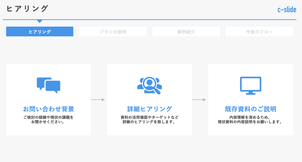 例)実際僕が商談で使用しているヒアリングの流れを説明するページ