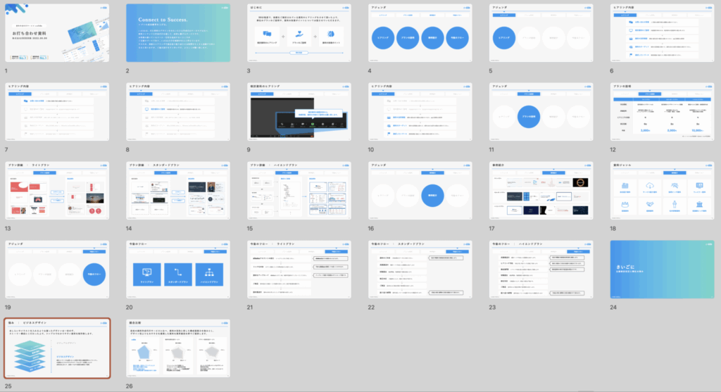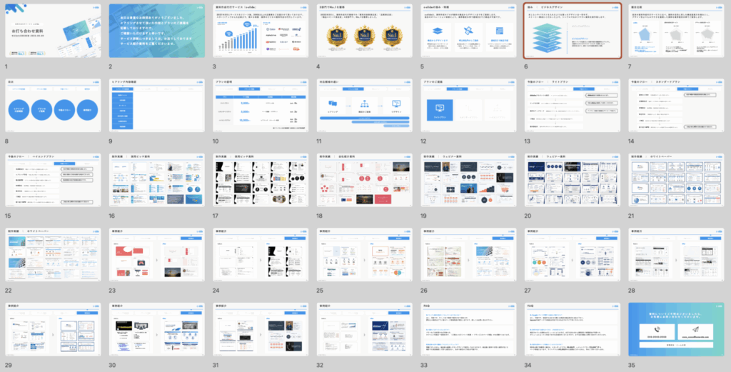 必要ページをコピペするだけで完成するよう、営業資料をベースに作成しています。