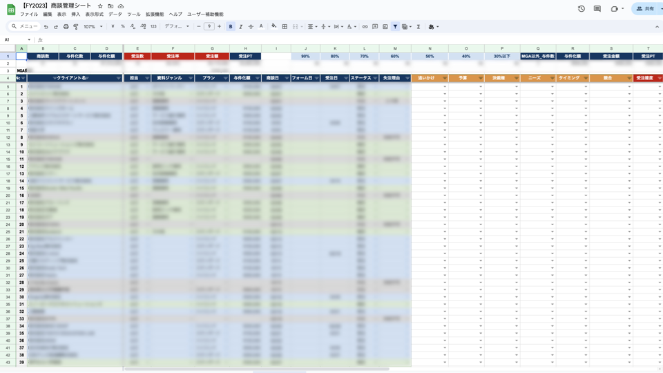 定例ミーティングでは商談管理シートを用いて各目標数値の確認を行っていたため、その延長で検討中案件のネクストアクションを議論する時間を設けました。