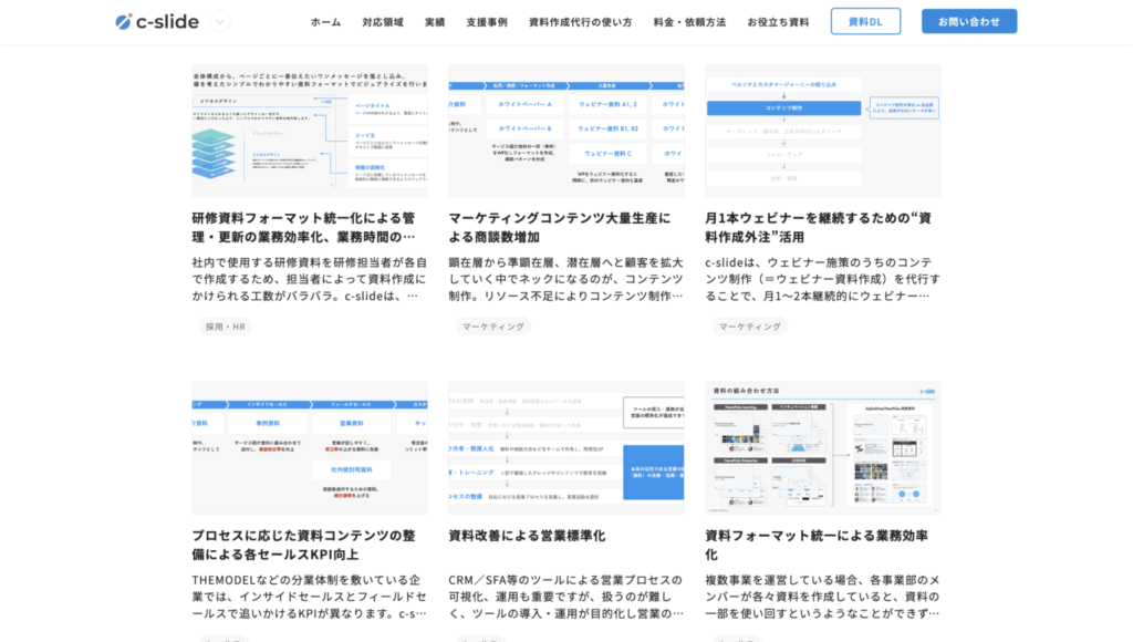 次に、自社が獲得したい顧客層の事例を追加します。たとえばマーケティング部の問い合わせを増やしたいのであれば、マーケティング部の課題を解決した事例を追加するといった具合です。