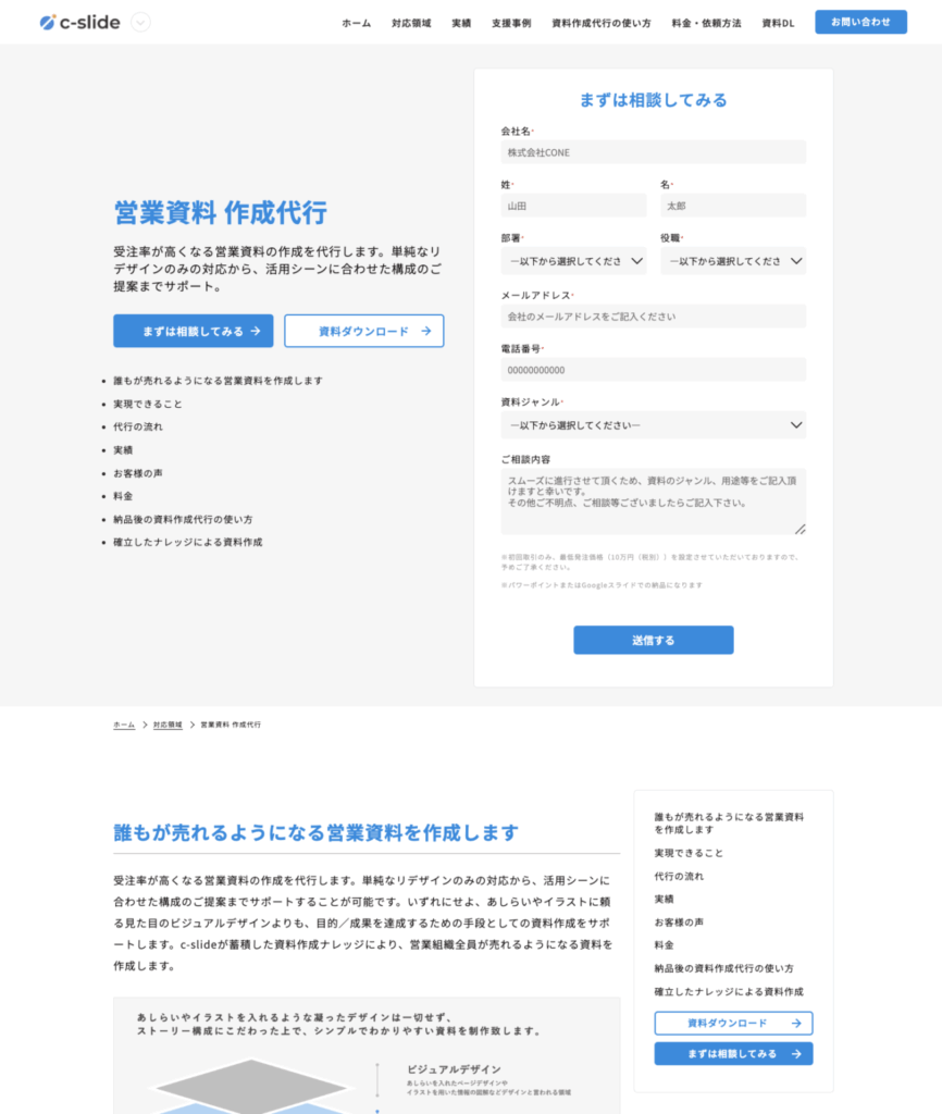 弊社では「資料作成代行の使い方」というコンテンツを用意し、成果が出るまでの道筋を示しています。