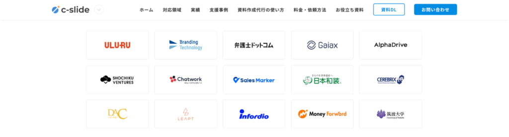 まずは、だれもが知っている知名度の高い大手企業が自社顧客にいれば、そちらを追加します。有名な企業が事例にあるだけで、問い合わせ数が増加します。