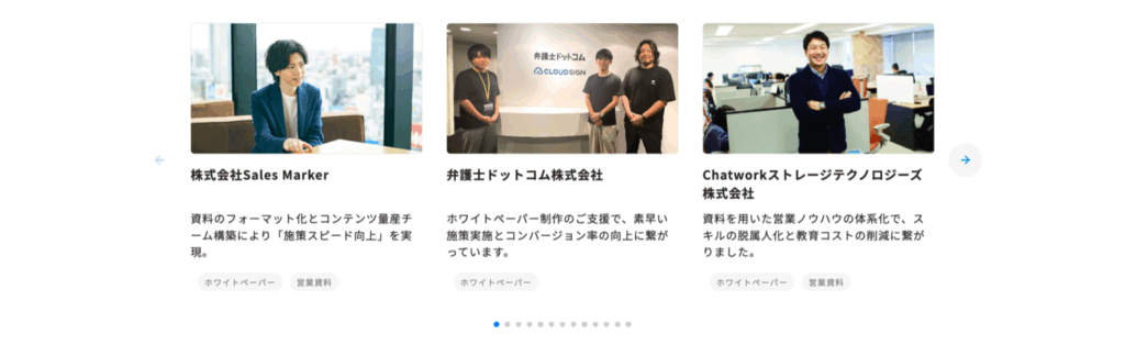 この導入事例に力を入れていない企業が意外と多いため、注力できると非常に差がつくポイントとなります。