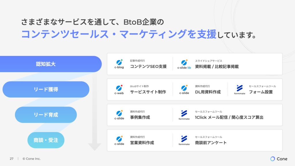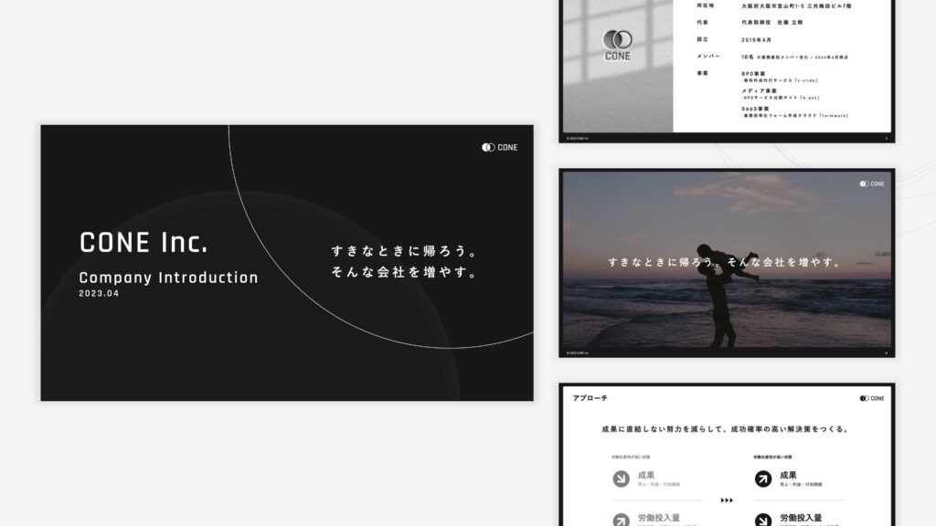 こんにちは。株式会社Coneの湯淺です。実は先日、約2年半ほど放置状態だった会社紹介資料を刷新しました。
