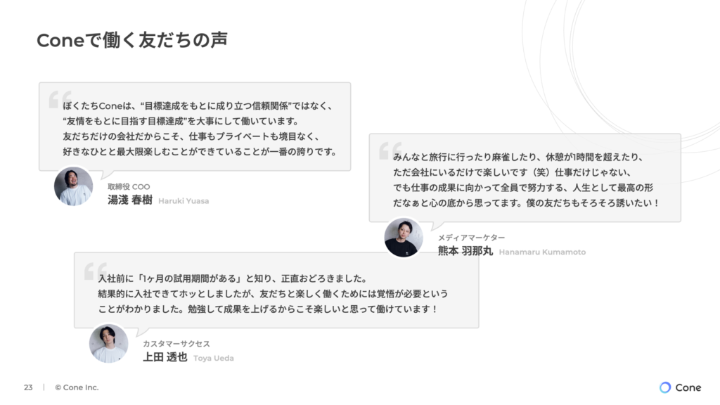 - Coneという会社を少しでも多くの方が知るきっかけ作り