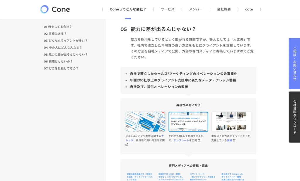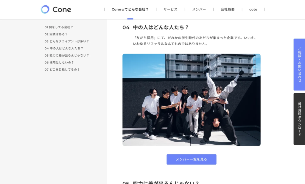 - 社外の知人から「最高です!Coneさんの良いところが伝わるサイトですね」との言葉