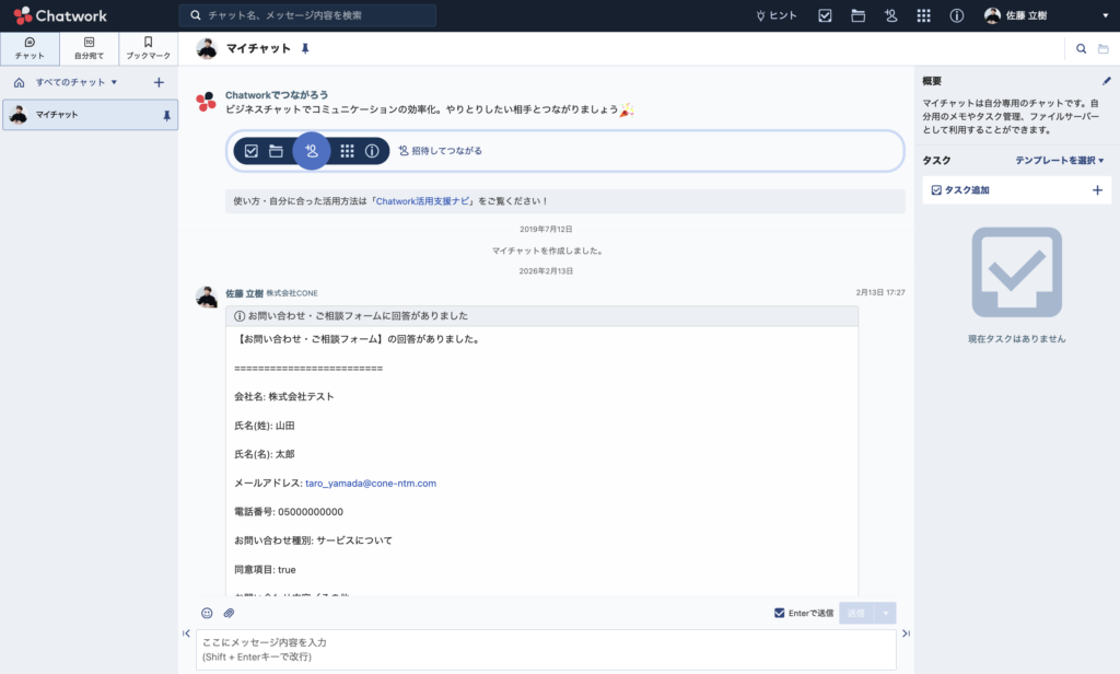 フォーム送信時や日程調整完了時などに、Chatworkへリアルタイム通知が可能になりました。これまでSlackのみの対応でしたが、国産チャットツールとして高いシェアを持つChatworkにも対応することで、より多くの企業でのスムーズな情報共有を実現します。