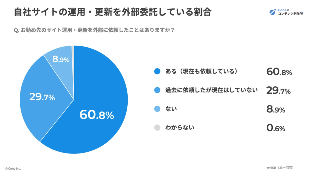 BtoB企業の約9割(90.5%)がサイトの運用・更新で外部の力を借りた経験があり、外部パートナーの活用が標準戦略となっています。