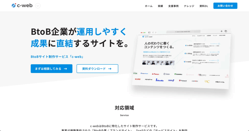 弊社Coneの提供するBtoBサイト制作サービス「c-web」では、以下のようなサポートを行っています。